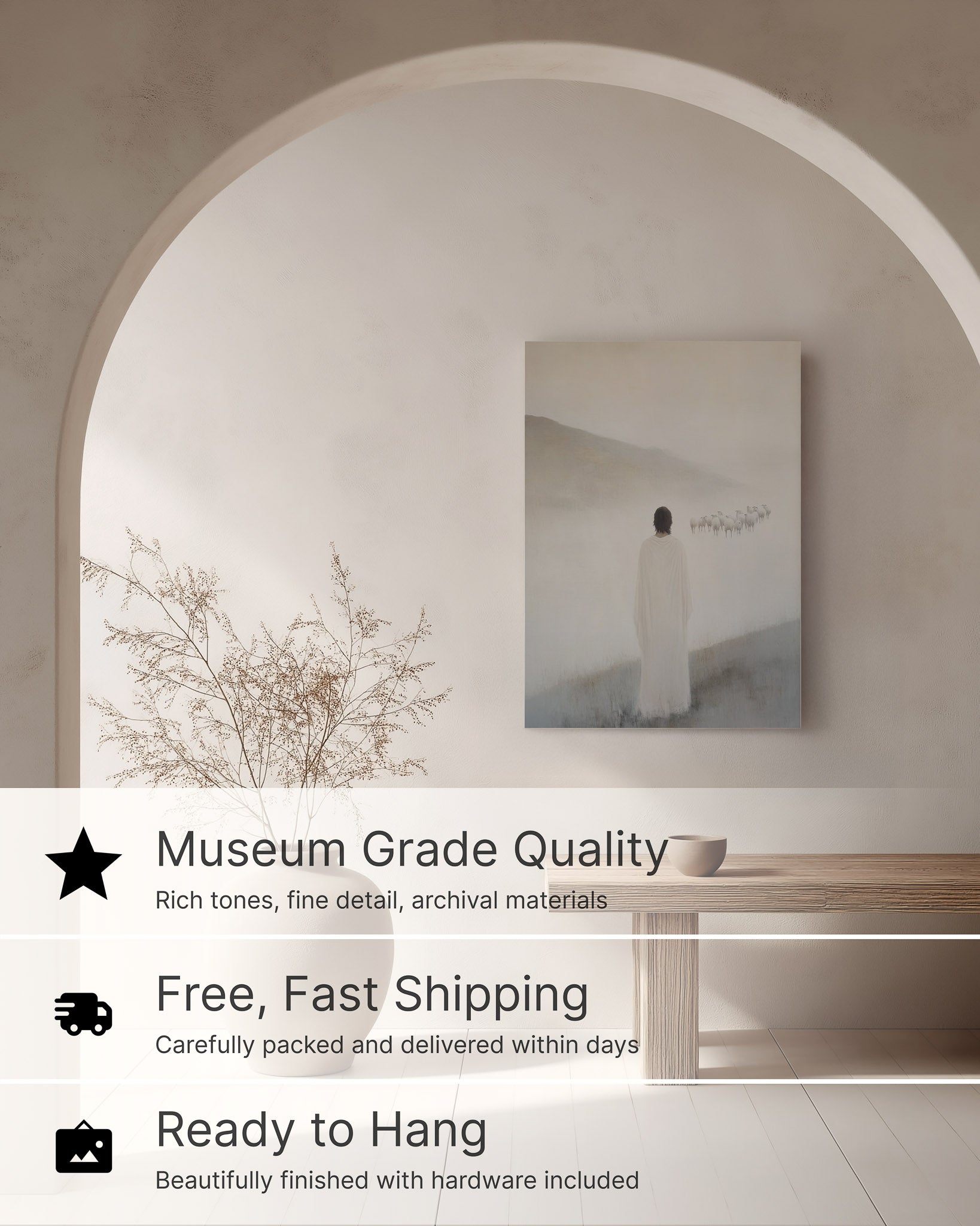 A timeless, meaningful piece of art. I originally ordered a smaller size, but it was so stunning I had to upgrade to a larger version and purchase two more. Quality is excellent and shipping was fast.