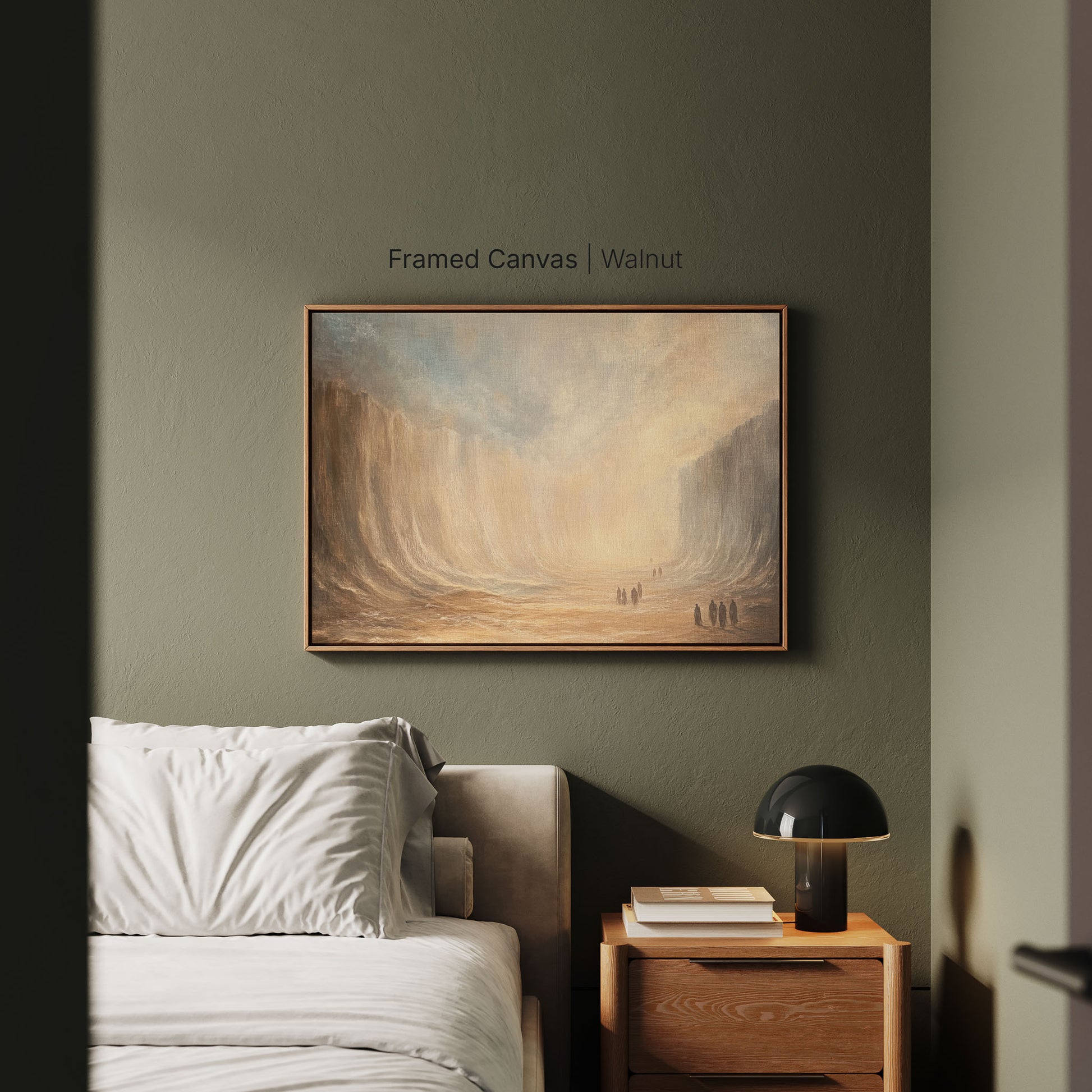 Sweeping dramatically toward the horizon, “Parting of the Red Sea” captures the awe of God’s deliverance. With towering water walls and warm prophetic tones, this christian canvas creates a powerful focal point for any faith inspired interior.