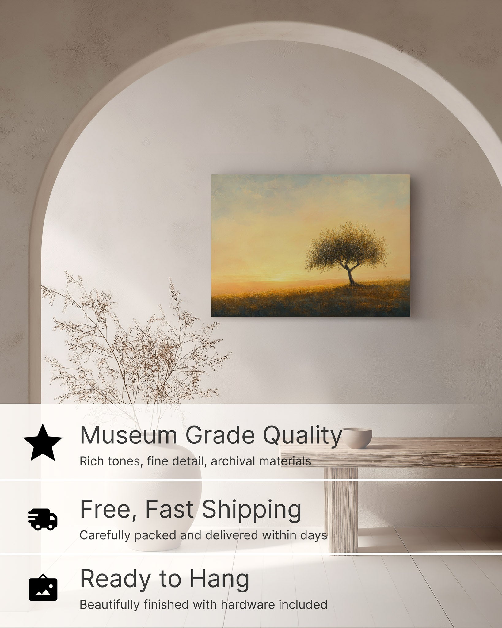 Standing alone under the fading evening sky, “Tree of Gethsemane” captures the solemn beauty of Christ’s night of prayer. Its warm earthy palette creates reflective christian wall art suited for boho interiors and restful spaces.